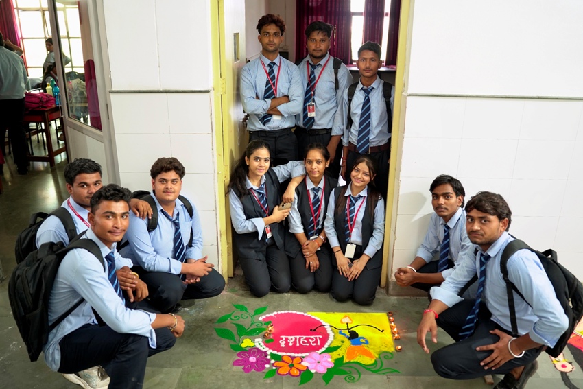 Shri Ram College, Muzaffarnagar: On the occasion of "Seva Pakhwada 2025," the Fine Arts Department of Shri Ram College organized a grand Rangoli and Card Making Competition. The program began with the lighting of a lamp, attended by Dr. Prerna Mittal, Principal, Shri Ram College, Dr. Ashok Kumar, Director, Dr. Saurabh Mittal, Vice Principal, Dr. Vineet Sharma, Dean, Academics, and Dr. Manoj Dhiman, Director, Fine Arts.