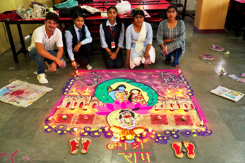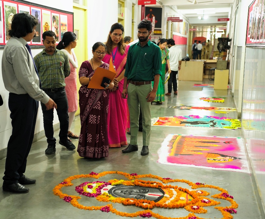 The Department of Fine Arts organized a grand rangoli competition to commemorate Vijayadashami. The theme of this competition was Dussehra, the triumph of good over evil.