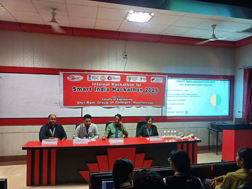 The Department of Computer Science and Engineering at Shri Ram College of Engineering, a unit of the Shri Ram Group of Colleges, Muzaffarnagar, organized an internal hackathon, "Smart India Hackathon-2025." Each year, AICTE organizes programs on various themes. Similarly, this year, the program was organized on the theme of "Innovation and Development" under the "SIH-2025" initiative. The program was inaugurated by lighting the lamp by the chief guest, Dr. S.C. Kulshrestha, the founding president of the organization. The program features an exhibition of working prototypes created within the SIH group.