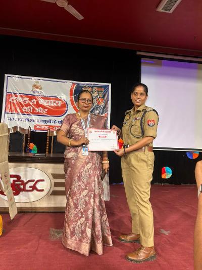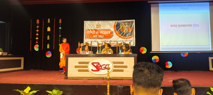 A program was organized at Shri Ram College of Law, Muzaffarnagar, jointly with Shri Ram College of Law and the Police Administration, Muzaffarnagar. Mrs. Indu Siddharth, Superintendent of Police, Crime, Muzaffarnagar, was the chief guest. Dr. Ravindra Pratap Singh, Principal of Chaudhary Harchand Singh College of Law, was present as the special guest.