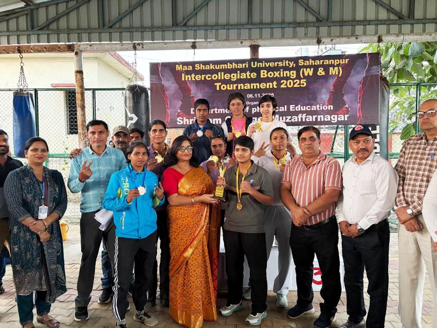 Pramod Kumar, Head of the Department of Physical Education, stated that Maa Shakumbhari University had entrusted Shri Ram College, Muzaffarnagar, with the responsibility of organizing the Inter-College Boxing Tournament (Men and Women). In this context, team events for the Boxing (Men and Women) category were held today to select the university team. In the Men's Boxing match, Shri Ram College, Muzaffarnagar, secured first place, followed by SD College,Muzaffarnagar, second. In the Women's Boxing category, Shri Ram College, Muzaffarnagar, secured first place, followed by Hari College, Saharanpur, second. The college's Boxing (Men and Women) team, selected for this tournament, will participate in the North Zone Inter-University Boxing (Men and Women) competition, leading the team from Maa Shakumbhari University.