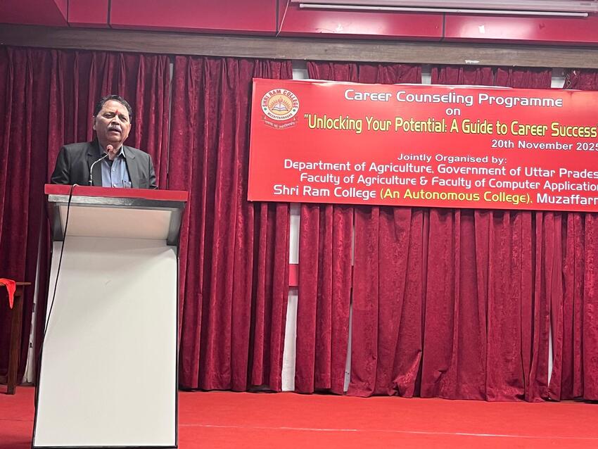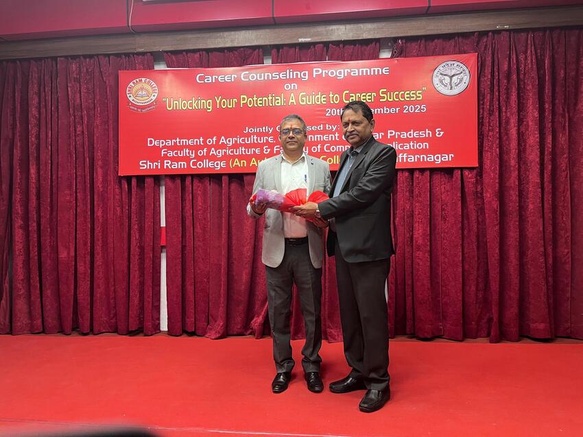 The Faculty of Agriculture and Computer Applications at Shri Ram College, under the auspices of the Department of Agriculture and Employment, Muzaffarnagar (Government of Uttar Pradesh), organized a career counseling program for educated youth on the topic "Unlocking Your Potential: A Guide to Career Success." This program was part of the 25-day Rural Youth Skill Development Program. The program was inaugurated by Dr. Pramod Sirohi, Deputy Director of Agriculture, Muzaffarnagar; Mrs. Parul Singhal, Employment Officer; Dr. Ashok Kumar, Institute Director; Dr. Prerna Mittal, Principal of Shri Ram College; Dr. Vineet Kumar Sharma; Nishant Rathi, Dean of Computer Applications, and Dr. Mohammed Naeem, Chairperson of the Agriculture Department.