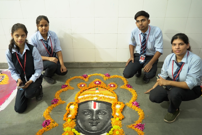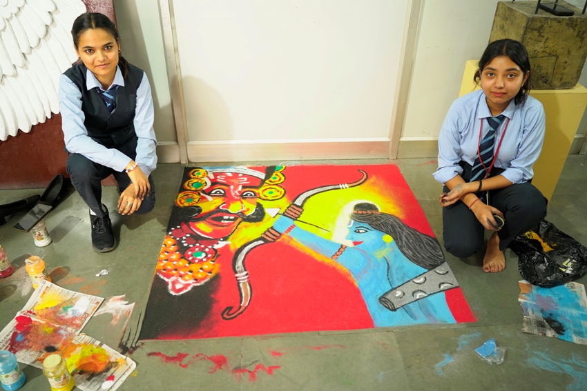The Department of Fine Arts organized a grand rangoli competition to commemorate Vijayadashami. The theme of this competition was Dussehra, the triumph of good over evil.