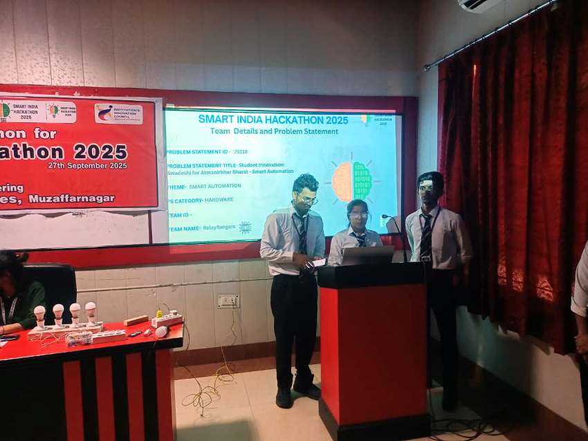 Arihant Jain, Kanishk Jain, and Mehak Bansal of Shri Ram Group of Colleges developed a retrofit smart switchboard that allows remote operation using IoT, a revolutionary initiative in energy conservation. The project was evaluated by judges including Dr. S.N. Chauhan, Director of Shri Ram Group of Colleges, Engineer Firoz Ali, Head of the Department of Civil Engineering, and Engineer Kanupriya, Head of the Innovation Cell and Head of the Department of Electronics and Communication Engineering at Shri Ram Group of Colleges. The top 20 teams were selected and honored.