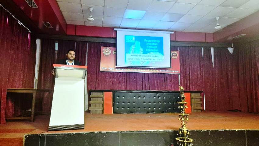 The keynote speaker, Prashant Dixit, briefed everyone on the program's objectives and explained that before investing in the stock market, we must have three types of accounts: savings, demat, and trading accounts. He also explained that six thousand companies are registered on the Bombay Stock Exchange. Before investing in any company, it's important to consider its price-earnings ratio, its debt, and its balance sheet status. He informed all the students about investment and cybersecurity. He explained how we can save a portion of our income and how and where to invest it. He also provided detailed information about the Bombay Stock Exchange and SEBI. He also informed the students about insurance, explaining how we can protect our families from financial difficulties by purchasing health and life insurance. He also provided detailed information about inflation and informed them about investment methods in the capital market. He explained in detail about mutual funds, demat accounts, SIP applications, and other applications. A question-and-answer session was held at the end of the program, in which all students participated enthusiastically. The keynote speaker also answered all the students' questions satisfactorily. Following this, Dr. Saurabh Mittal, Vice Principal of the Commerce Department, and Dr. Ashfaq Ali, Head of the Department, jointly presented the keynote speaker with a memento and expressed their gratitude for his valuable time. The Head of the Commerce Department formally concluded the program with a vote of thanks and emphasized the need to organize similar programs in the future.