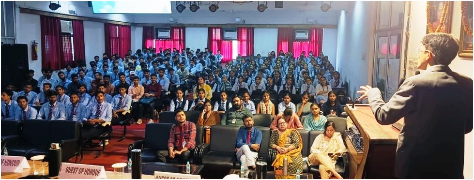 The keynote speaker for the workshop was Amit Pal Singh, Zonal BDM-Mirai Assistance, Sharekhan. He explained to students how they can avoid future financial difficulties by making small savings and investing the money now. He also introduced them to the stock market as part of the financial awareness program. Following this, Himanshu Aneja, an investment counselor at Mirai Assist Sharekhan, provided students with detailed information about SIPs, mutual funds, appropriate investment strategies, and demat accounts. Aneja taught the students practical stock market practices.