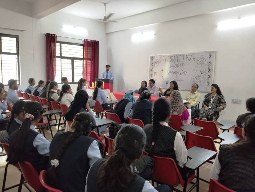 The Home Science Department of Shri Ram College organized a special program on the occasion of World Science Day. The program aimed to raise awareness about the importance of a plant-based diet, environmental protection, and animal welfare. The program began with welcome addresses by Dr. Prerna Mittal, Principal of Shri Ram College, Dr. Ashok Kumar, Director of Shri Ram College, and Dr. Vineet Kumar Sharma, Dean of Academics, Shri Ram College. Dr. Prerna Mittal, Principal of Shri Ram College, stated that a vegan lifestyle is a necessity in today's times. It not only keeps our bodies healthy but also helps protect the environment from pollution and global warming.