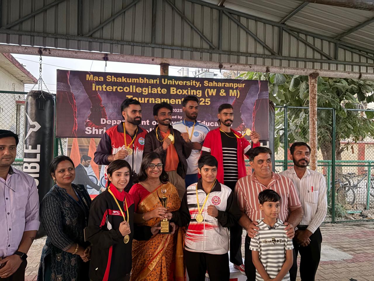 Representing Maa Shakumbhari University on this occasion was Dr. Rita Bora, Selector.On this occasion, Boxing (Men and Women) teams from Gochar College, Rampur Maniharan, Saharanpur, MS College, Saharanpur, Hari College Management, Saharanpur, IIMTT College Saharanpur, SKD Degree College Baghra, CCRD College, Muzaffarnagar, Shri Ram College, Muzaffarnagar, DAV College, Muzaffarnagar, Doon College, and SD College, Muzaffarnagar participated in the competition.The Boxing (Men and Women) tournament was formally inaugurated by Dr. Rita Bora, representative of Maa Shakumbhari University, selector and chief guest Dr. Prerna Mittal, Principal, Shri Ram College, Muzaffarnagar, Dr. Ashok Kumar, Director, Shri Ram College, Muzaffarnagar and Pramod Kumar, Head of the Department of Physical Education and Assistant Professor of the Department of Physical Education.
