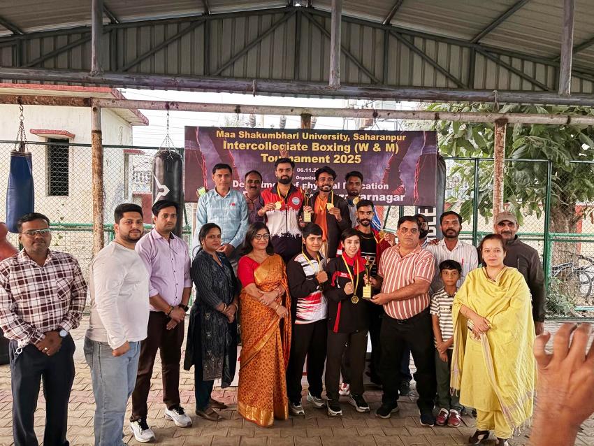 Pramod Kumar, Head of the Department of Physical Education, stated that Maa Shakumbhari University had entrusted Shri Ram College, Muzaffarnagar, with the responsibility of organizing the Inter-College Boxing Tournament (Men and Women). In this context, team events for the Boxing (Men and Women) category were held today to select the university team. In the Men's Boxing match, Shri Ram College, Muzaffarnagar, secured first place, followed by SD College,Muzaffarnagar, second. In the Women's Boxing category, Shri Ram College, Muzaffarnagar, secured first place, followed by Hari College, Saharanpur, second. The college's Boxing (Men and Women) team, selected for this tournament, will participate in the North Zone Inter-University Boxing (Men and Women) competition, leading the team from Maa Shakumbhari University.