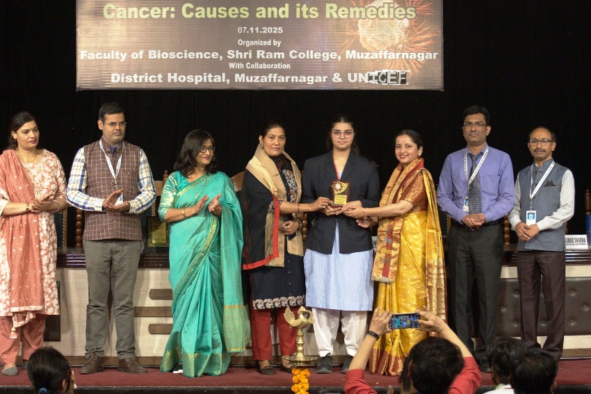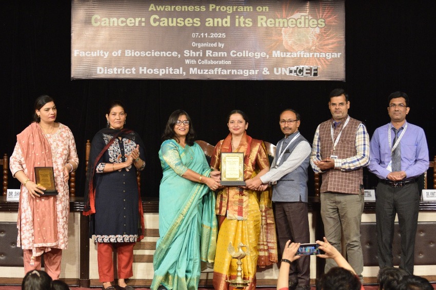 Today, in the auditorium of Shri Ram College, Muzaffarnagar, the Department of Biosciences organized National Cancer Awareness Day under the joint aegis of UNICEF and District Hospital Muzaffarnagar, in which the topic of the program was the causes and treatment of cancer.
